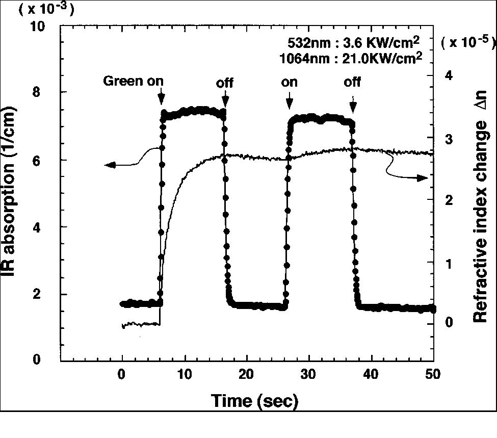 absorption and photorefraction as a function of time for an